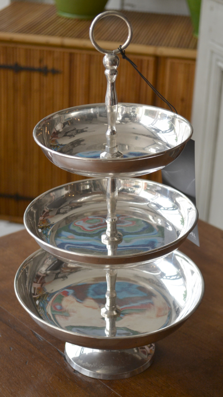 A pair of silver plate three tier cake stands, 38cm high