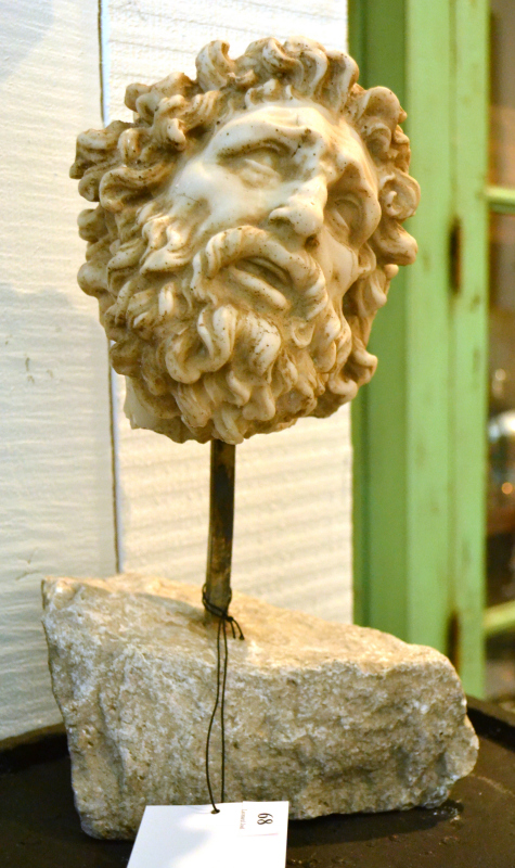 A Classical style composite head of a man, on a stone support, 35.5cm high