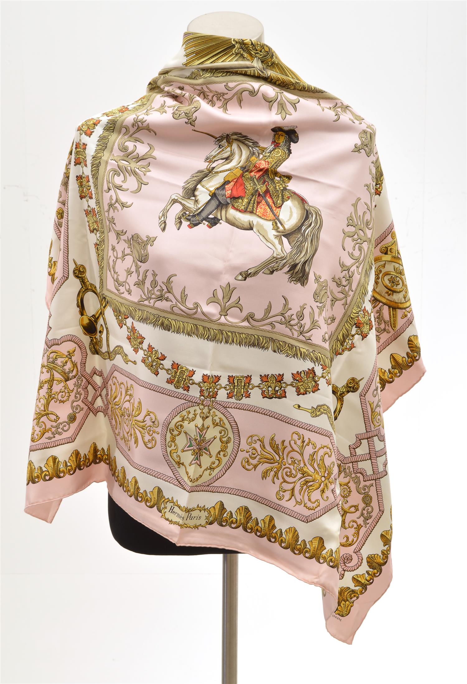 The 'Ludovicus Magnus' design by Francois de la Perrier, in colours of pale pink and gold, on an ivory and pink background, 89cm square.