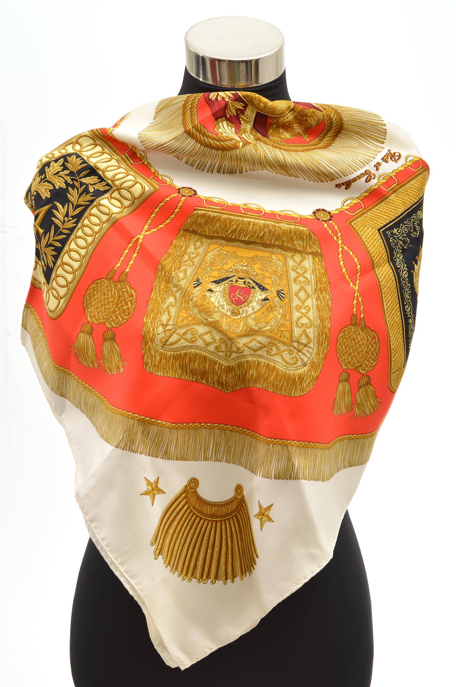 The 'Poste et Cavalerie' by Joachim Metz, in gold and orange on an ivory background, 89cm square.
