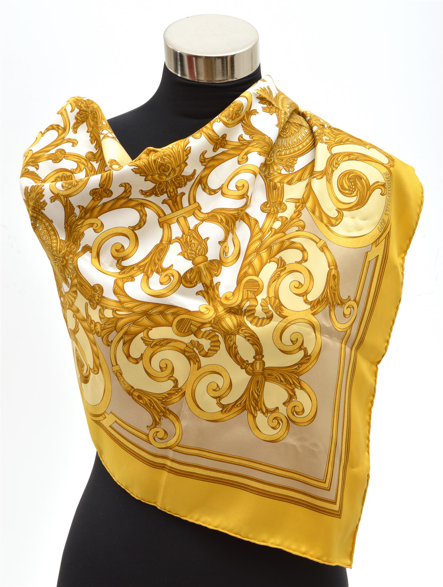 'Les Tuileries' design by Joachim Metz, in gold and ivory on a gold background, 89cm square.