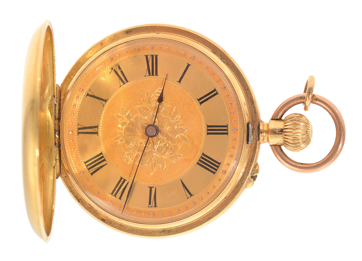 A GOLD MID-SIZE HUNTER POCKET WATCH