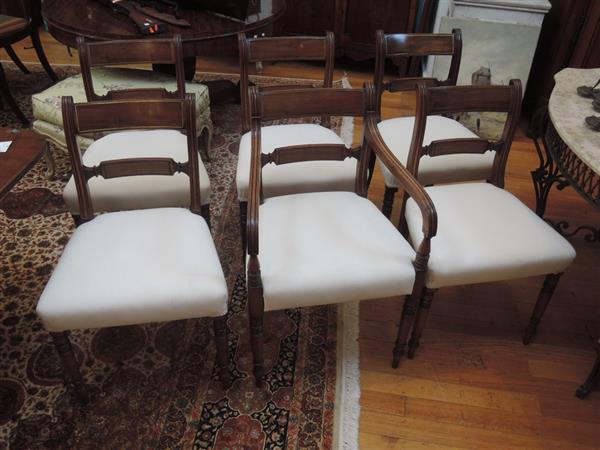 A SET OF SIX REGENCY MAHOGANY FRAMED DINING CHAIRS