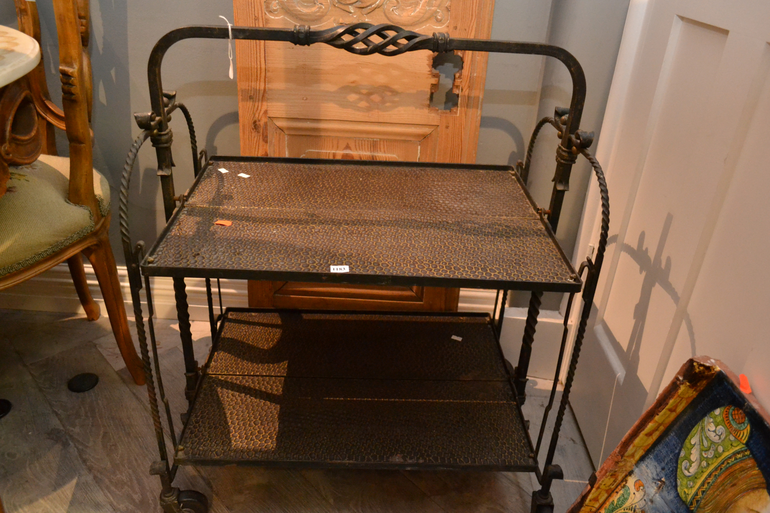 A French wrought iron framed auto trolley, 66 x 82 x 43.5cm