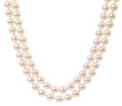 Pearls are well matched and display fine lustre. Individually knotted to the clasp which is fitted with a safety chain.