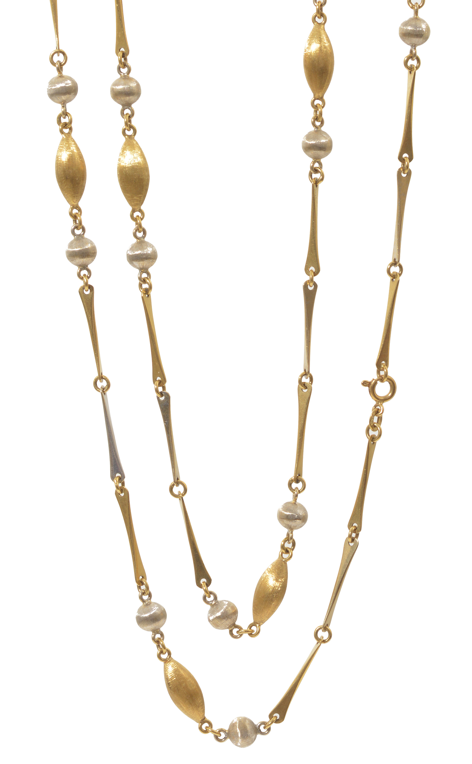 The fancy link design having brushed and polished finish in two tone 18ct gold, total length 460mm.