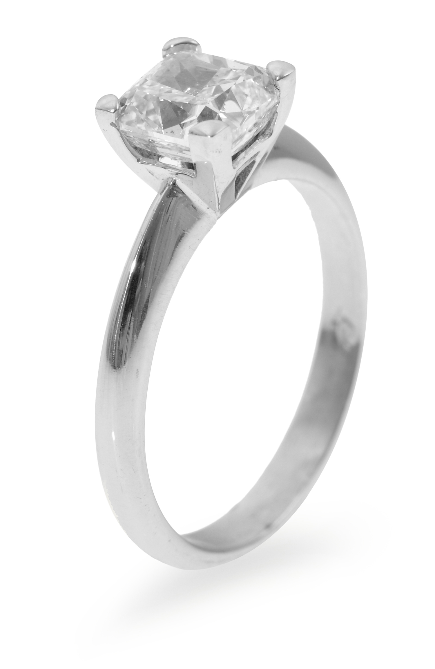 The cushion cut diamond of 1.90cts, accompanied by a GIA certificate stating colour F and clarity SI1, mounted in 18ct white gold, ring size O,