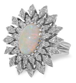 AN OPAL AND DIAMOND COCKTAIL RING