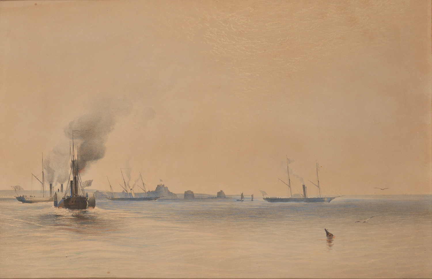 A DETAILED STATIC MODEL OF A SHIP, HOUSED IN A GLAZED DISPLAY CASE, (LOSSES, BOW SPRIT A/F)