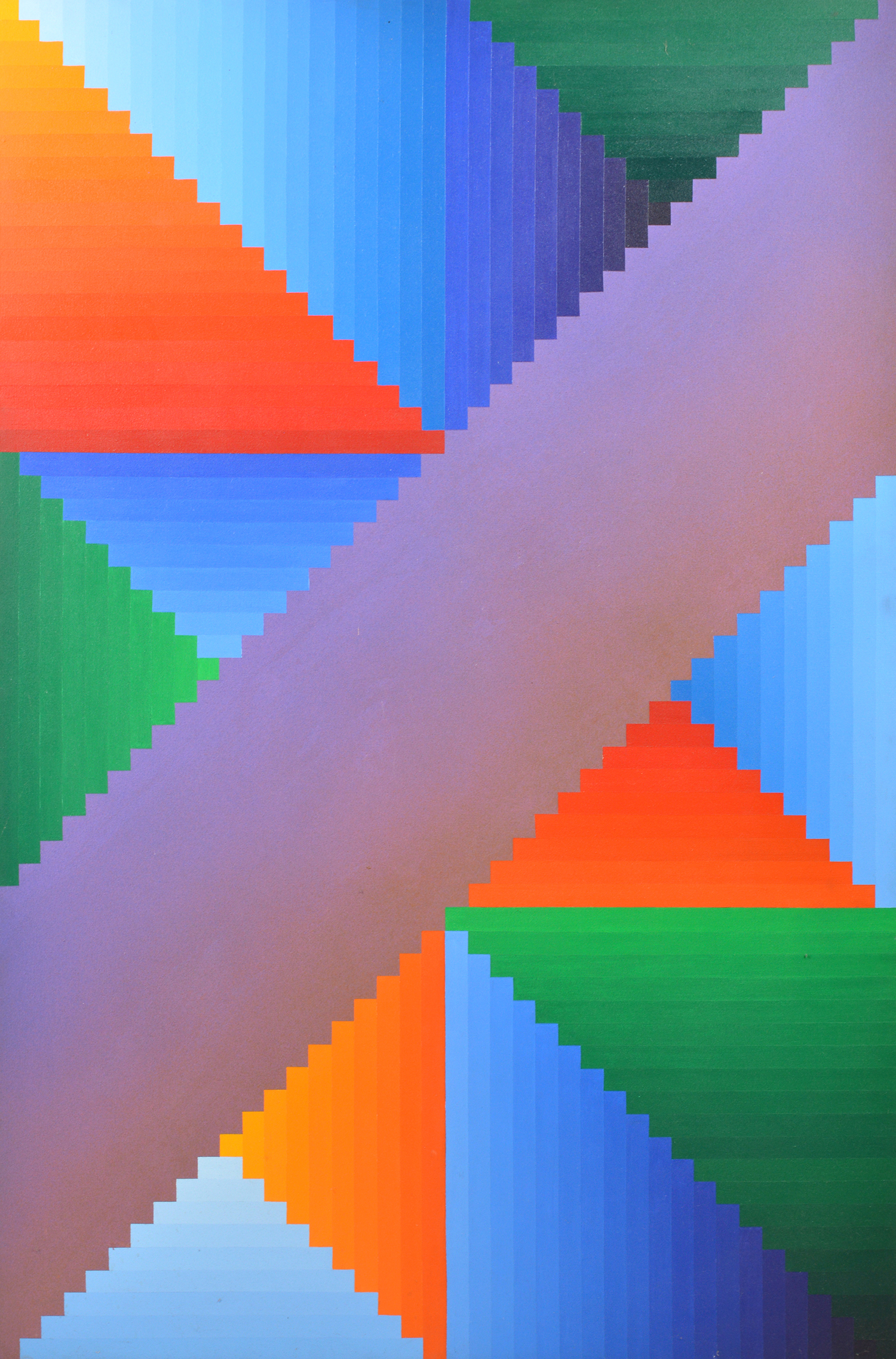 BARRIE GODDARD, TUMPA- STEPPING ON BOTH SIDES 1973, POLYMER PAINT ON CANVAS, 184 X 122CM