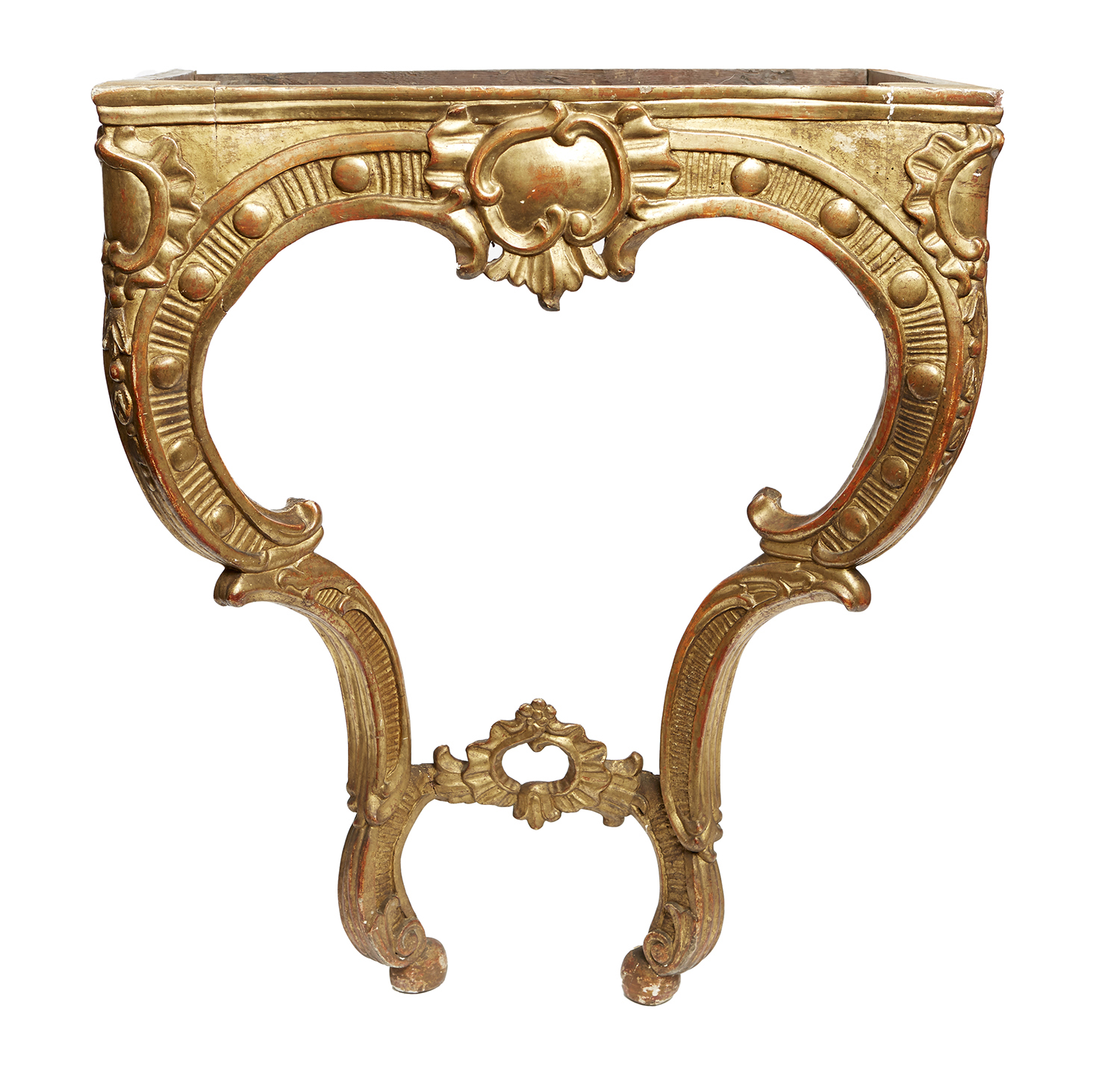 With Rosa marble top above scrolling acanthus and a scallop shell mouldings, on scrolled legs,