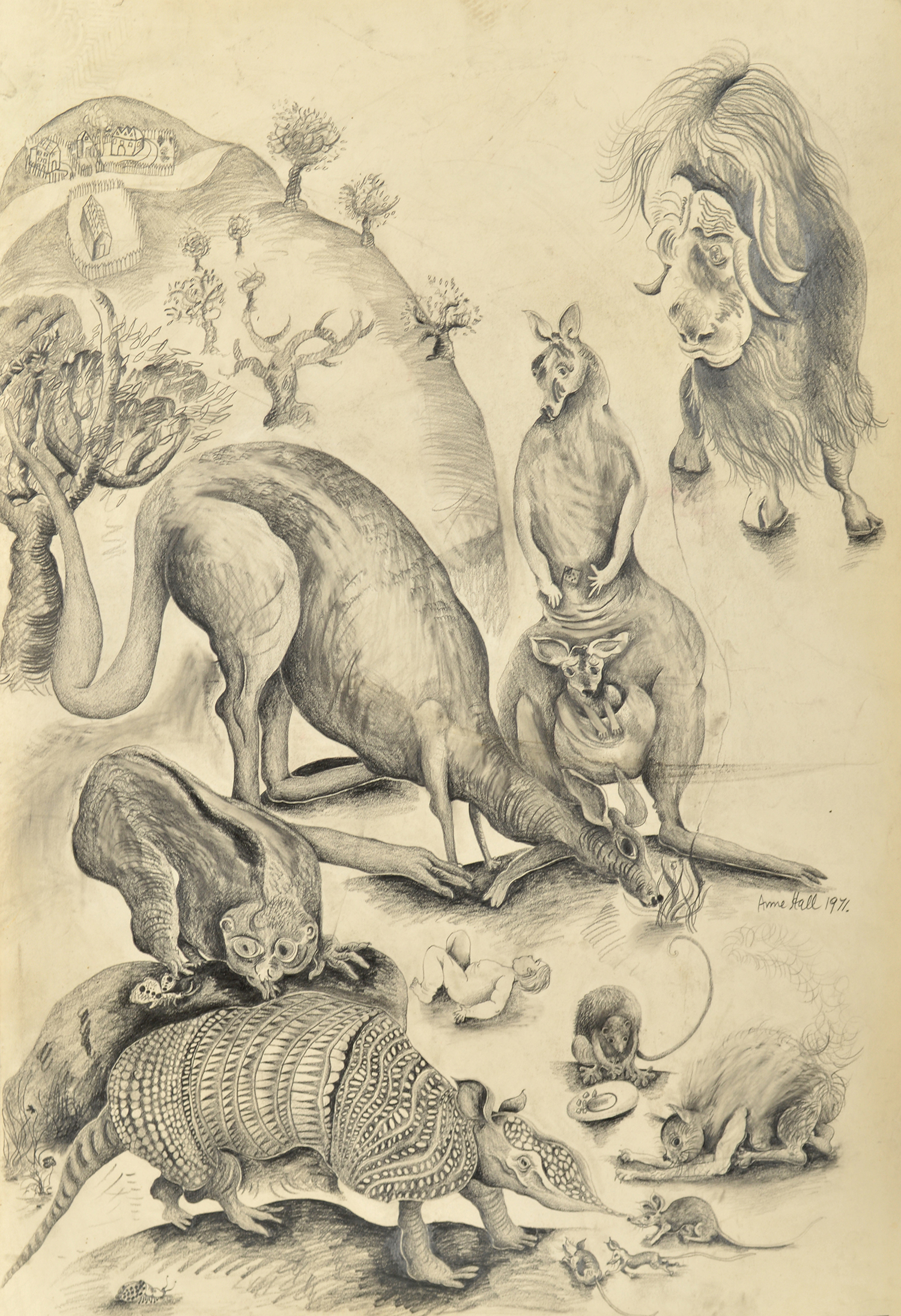 ANNE HALL (BORN 1945) John Perceval with Owl 1981 oil on canvas