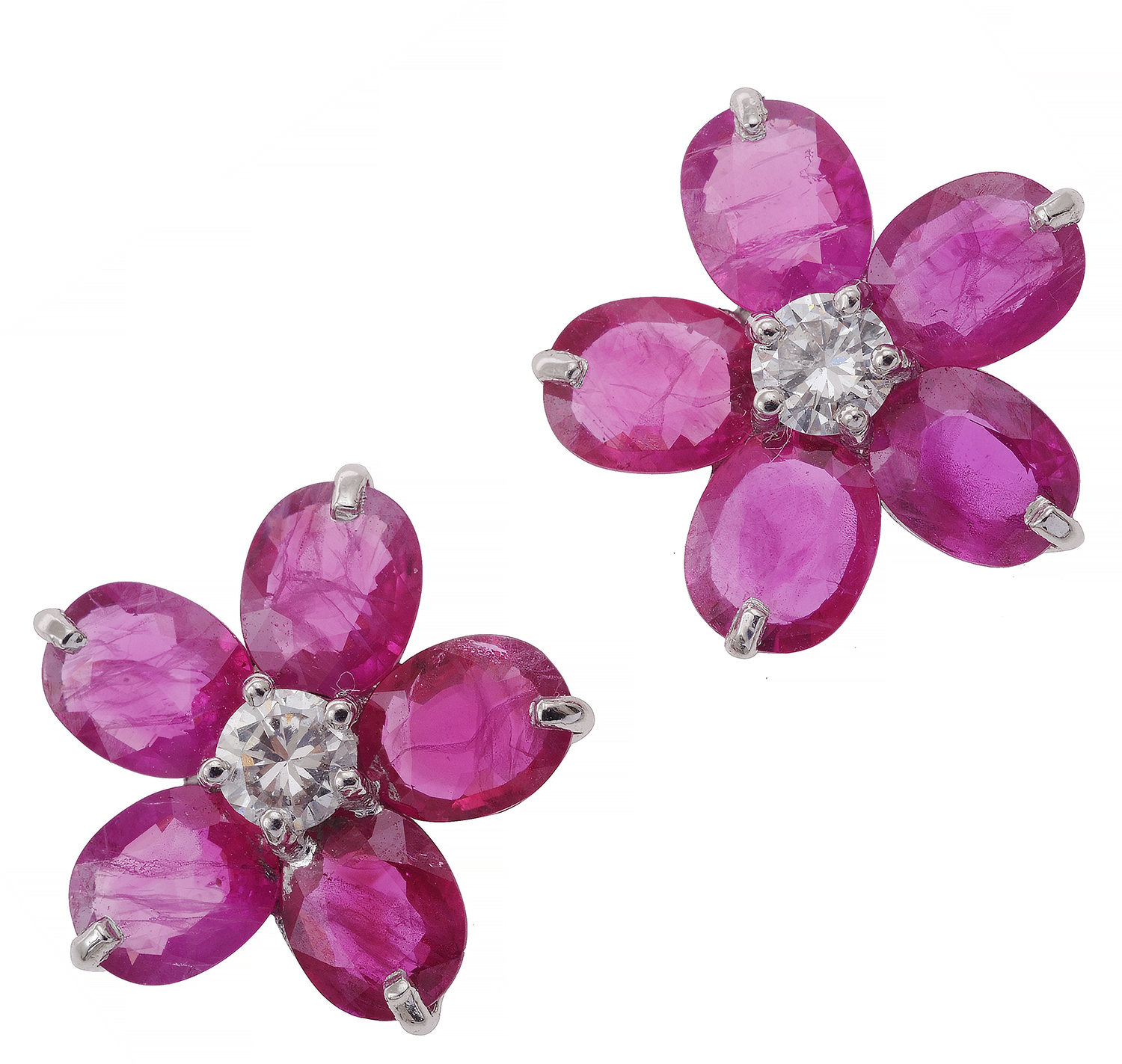 Each cluster earring centrally set with a round brilliant cut diamond surrounded by five oval cut rubies, mounted in 18ct white gold.
