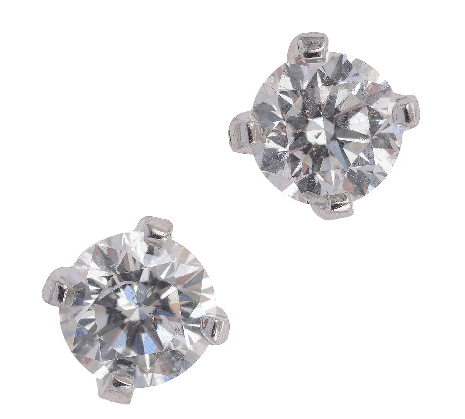 Each set with a round brilliant cut diamond of 0.70cts, mounted in 18ct white gold.