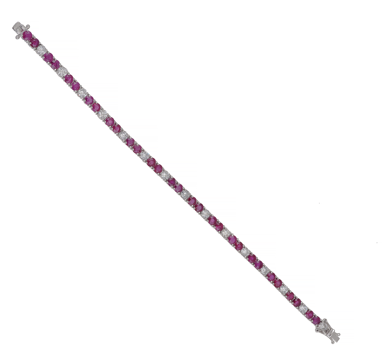 Featuring thirty round rubies interspaced with fifteen round brilliant cut diamonds, mounted in 18ct white gold, total length 190mm.