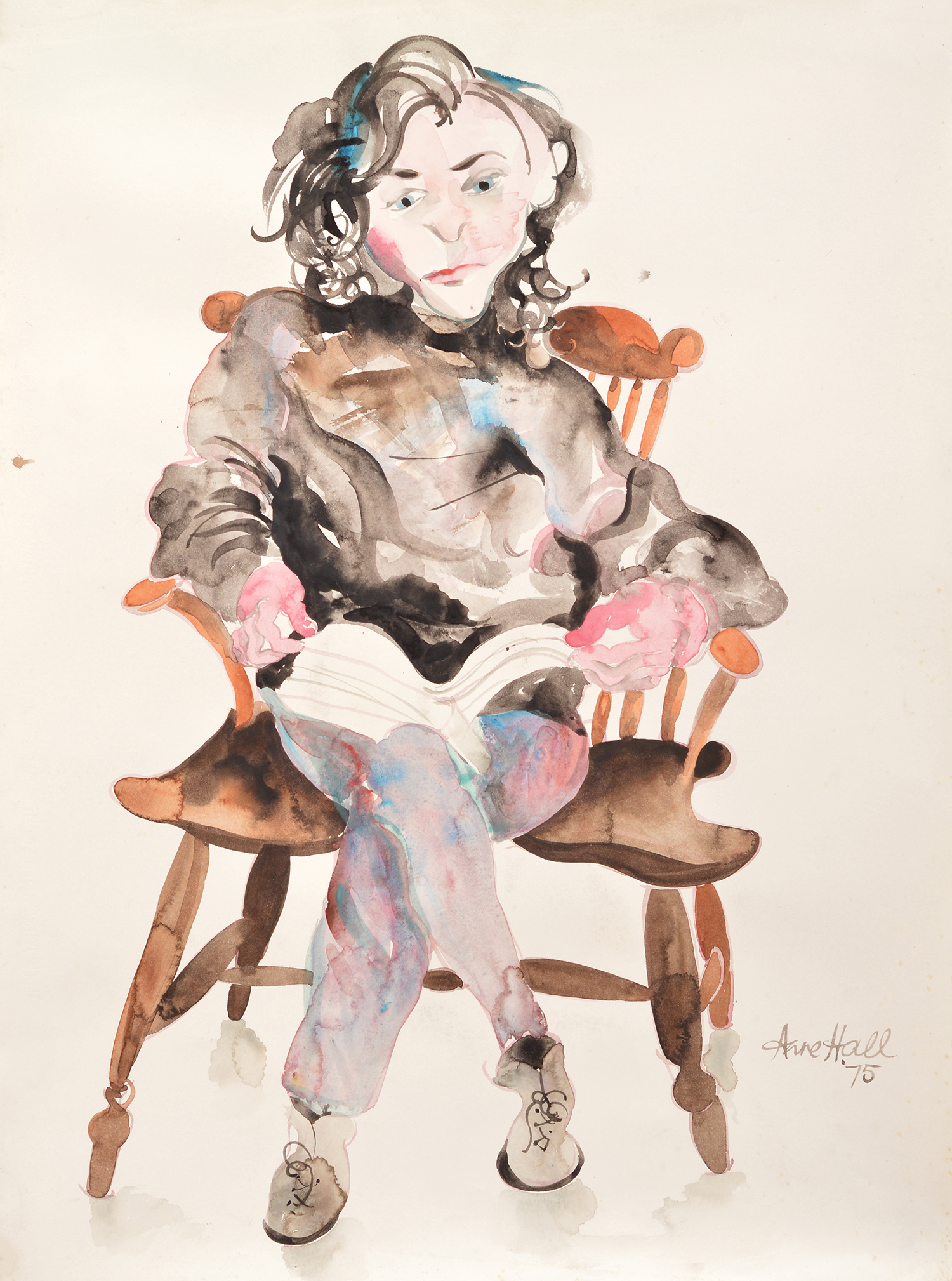ANNE HALL (BORN 1945) Figure in Purple Chair ink on paper