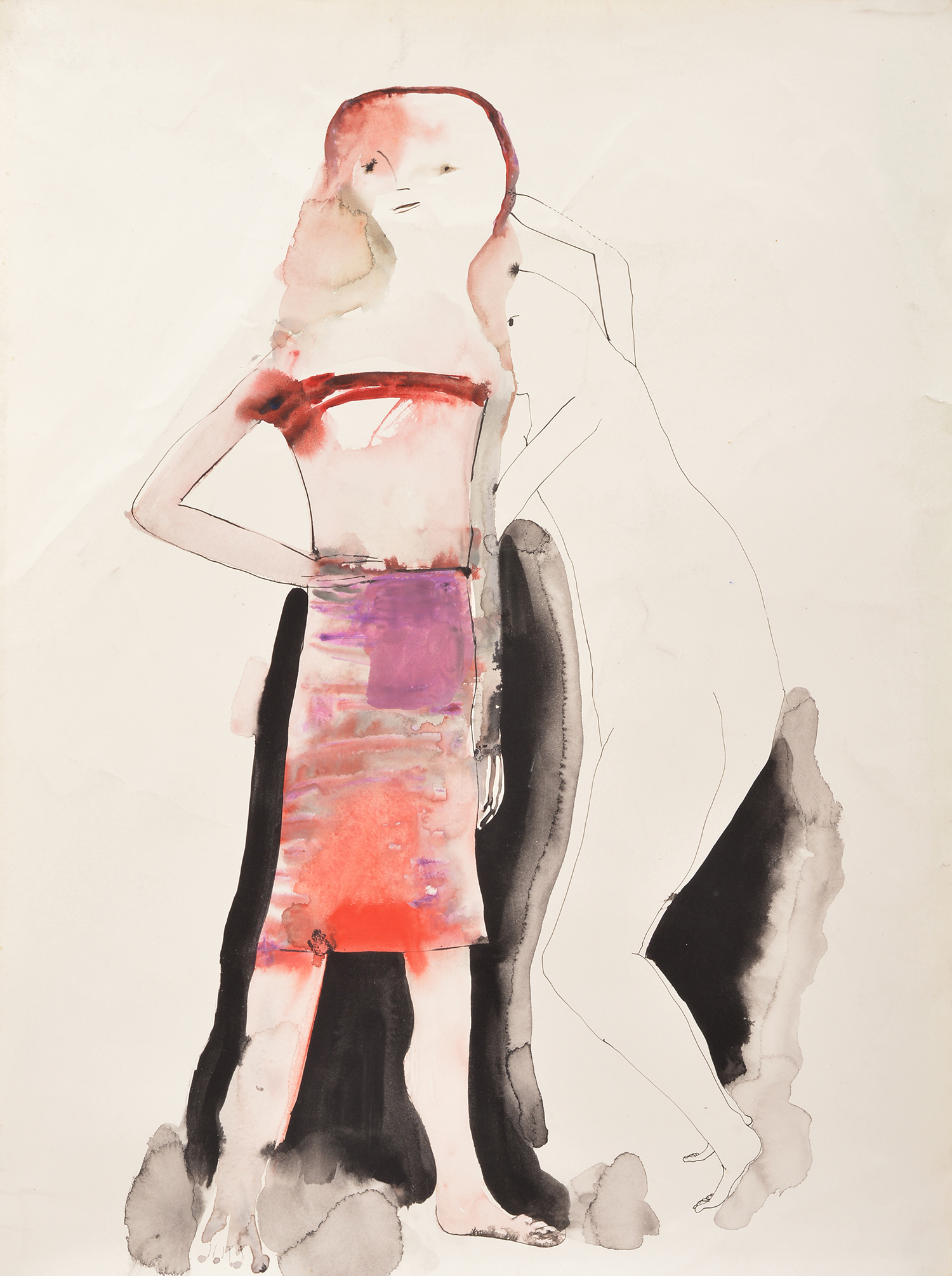 ANNE HALL (BORN 1945) Figure in Purple Chair ink on paper