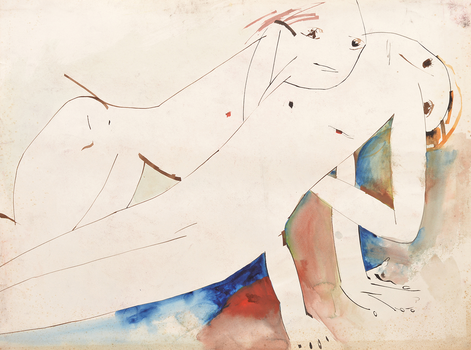 ANNE HALL (BORN 1945) Self Portrait In Black Top 1975 ink on paper