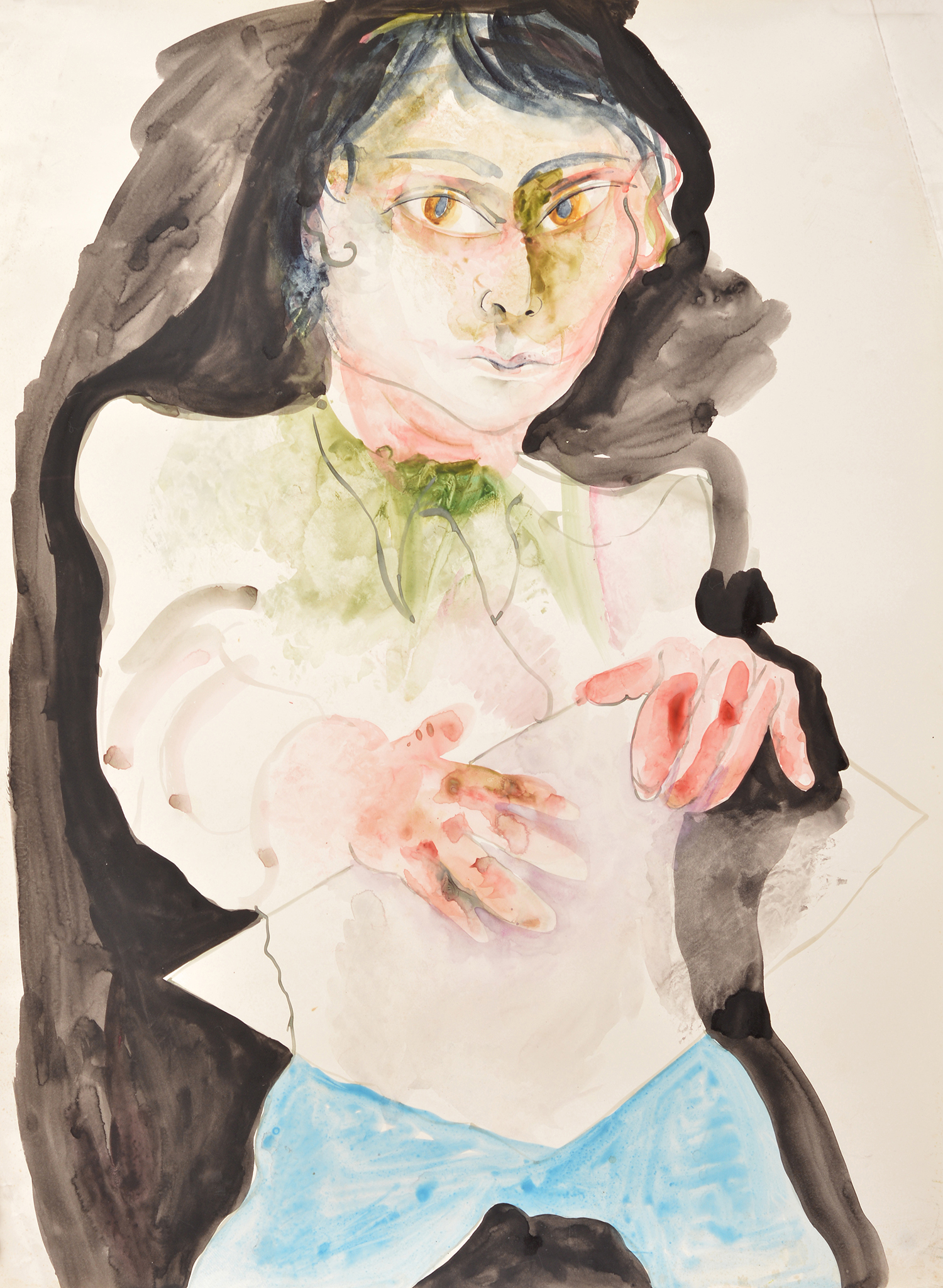 ANNE HALL (BORN 1945) Self Portrait In Black Top 1975 ink on paper