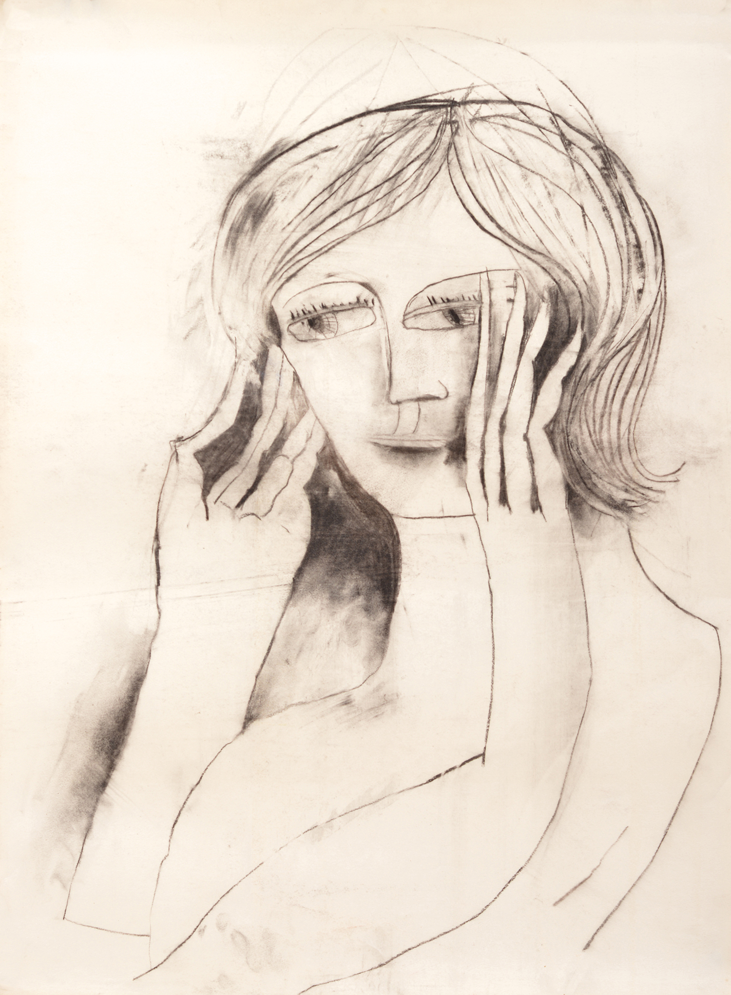 ANNE HALL (BORN 1945) Self Portrait In Black Top 1975 ink on paper