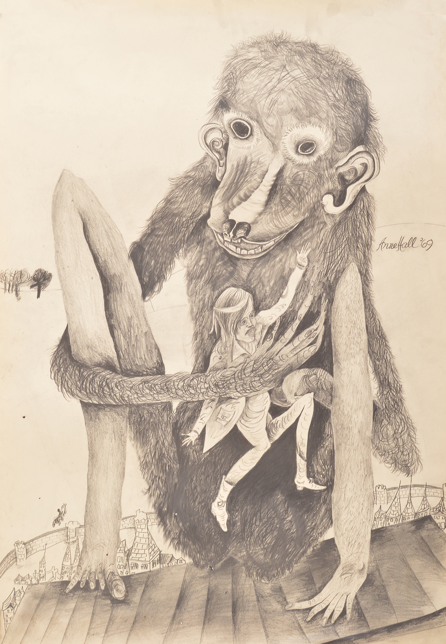 ANNE HALL (BORN 1945) Self Portrait In Black Top 1975 ink on paper