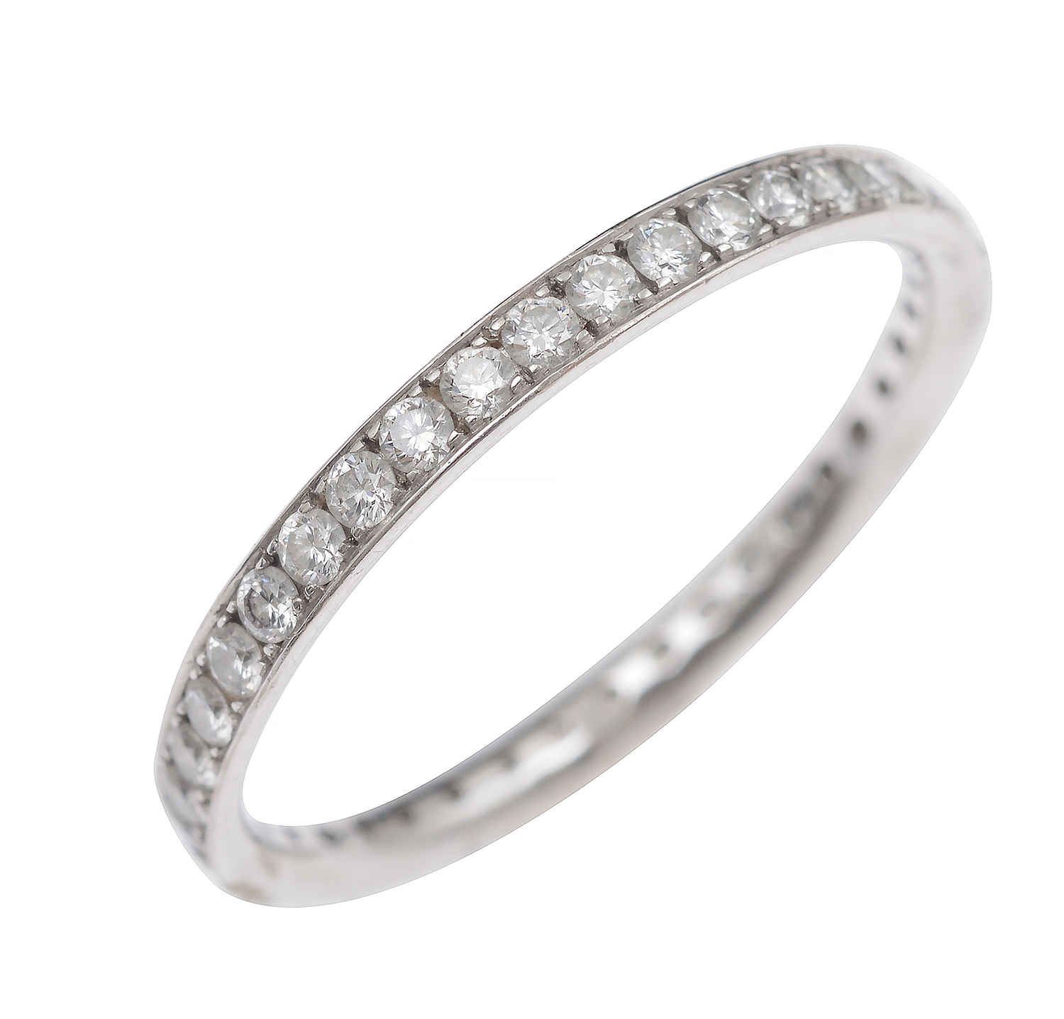 Comprising fifty eight round brilliant cut diamonds totalling 0.60cts, mounted in 18ct white gold, ring size Q.
