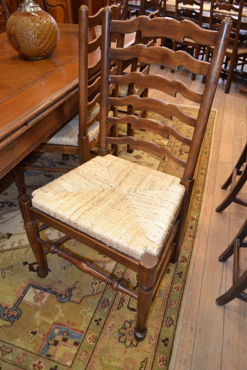 SET OF SIX OAK LADDER BACK DINING CHAIRS