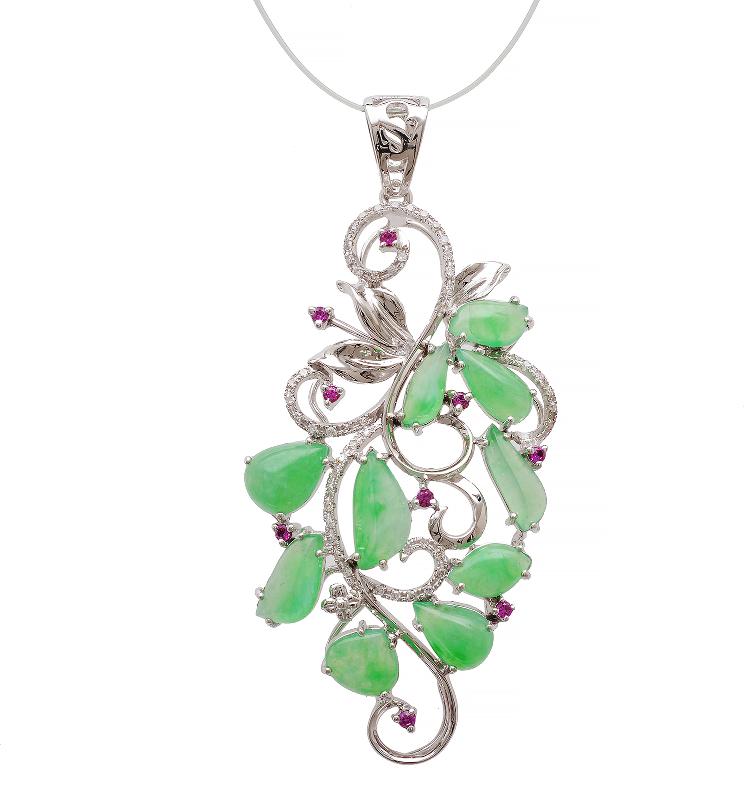 A JADEITE, RUBY AND DIAMOND SET PENDANT