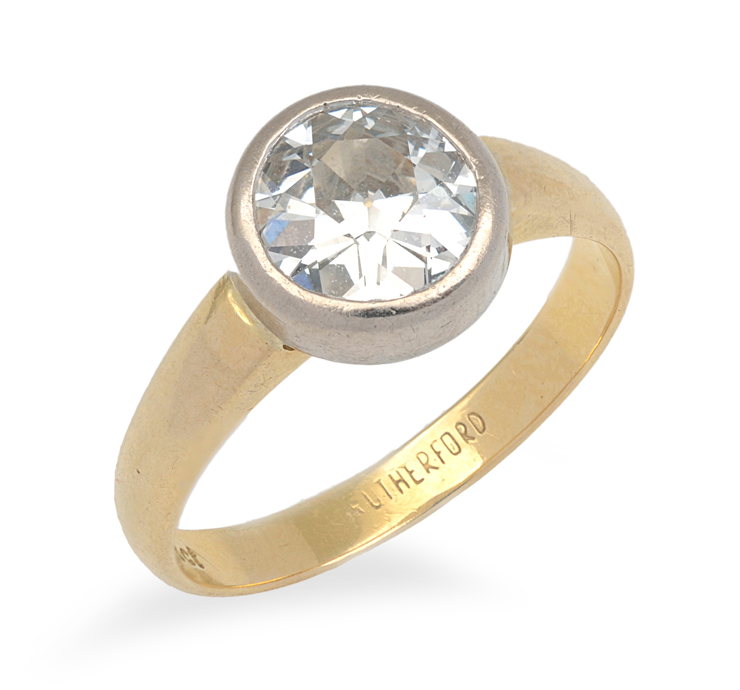 The old European cut diamond of 1.30cts, collet set and mounted in two tone 18ct gold.