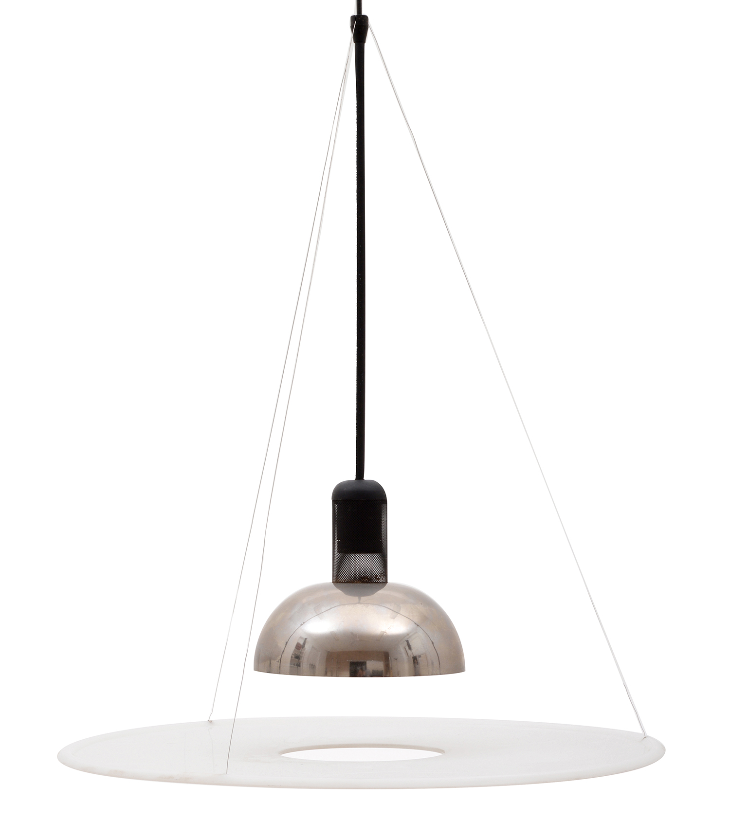 Acrylic diffuser, fine steel cables, metal stem and wire mesh