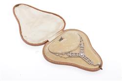 This piece presents in excellent condition and stones are well matched. One knife edge bar has been lead soldered, diamonds are colour H-J, clarity VS-SI.