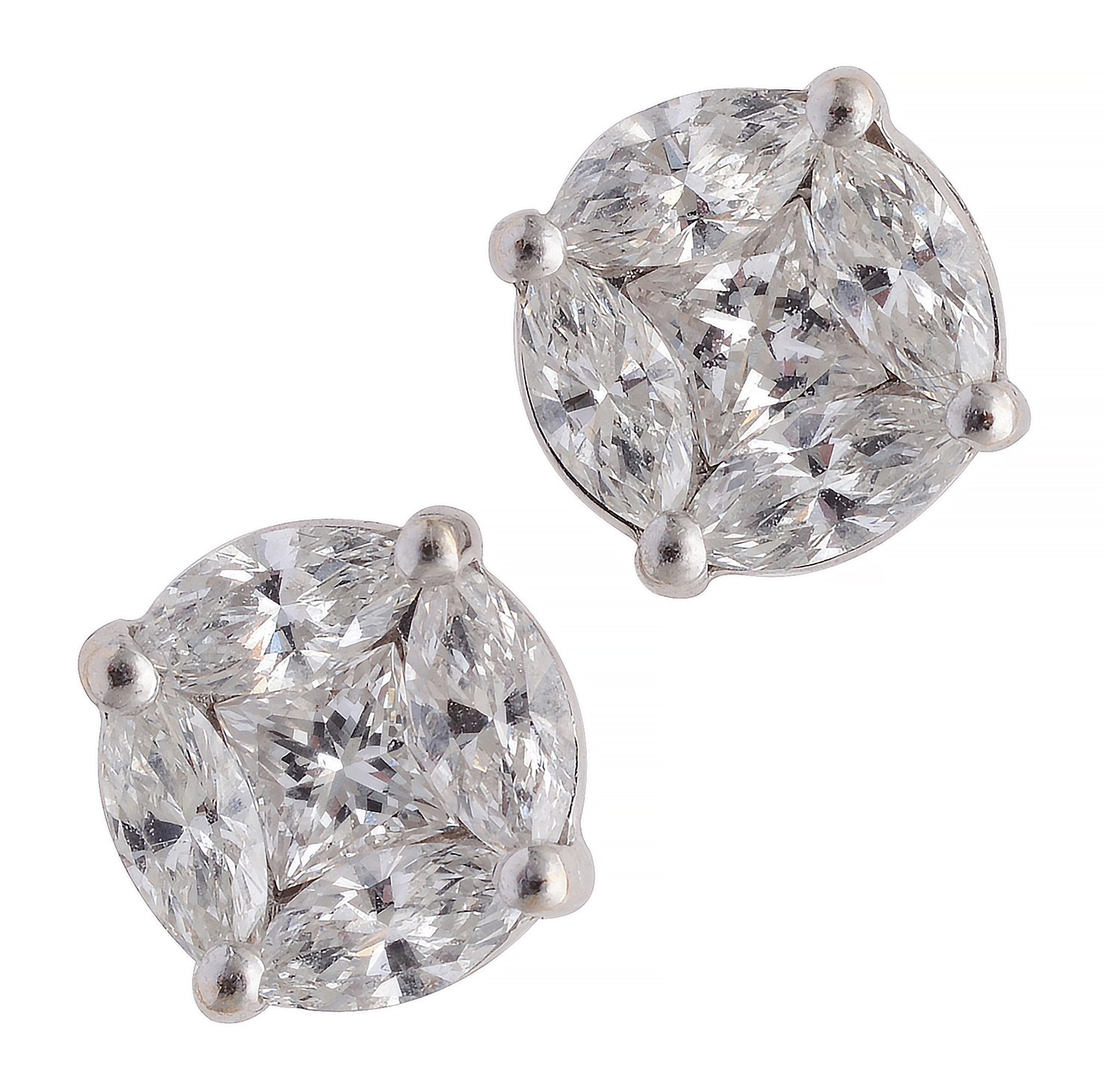 Each centrally set with a princess cut diamond of 0.25cts, surrounded by four marquise cut diamonds, mounted in 14ct white gold.