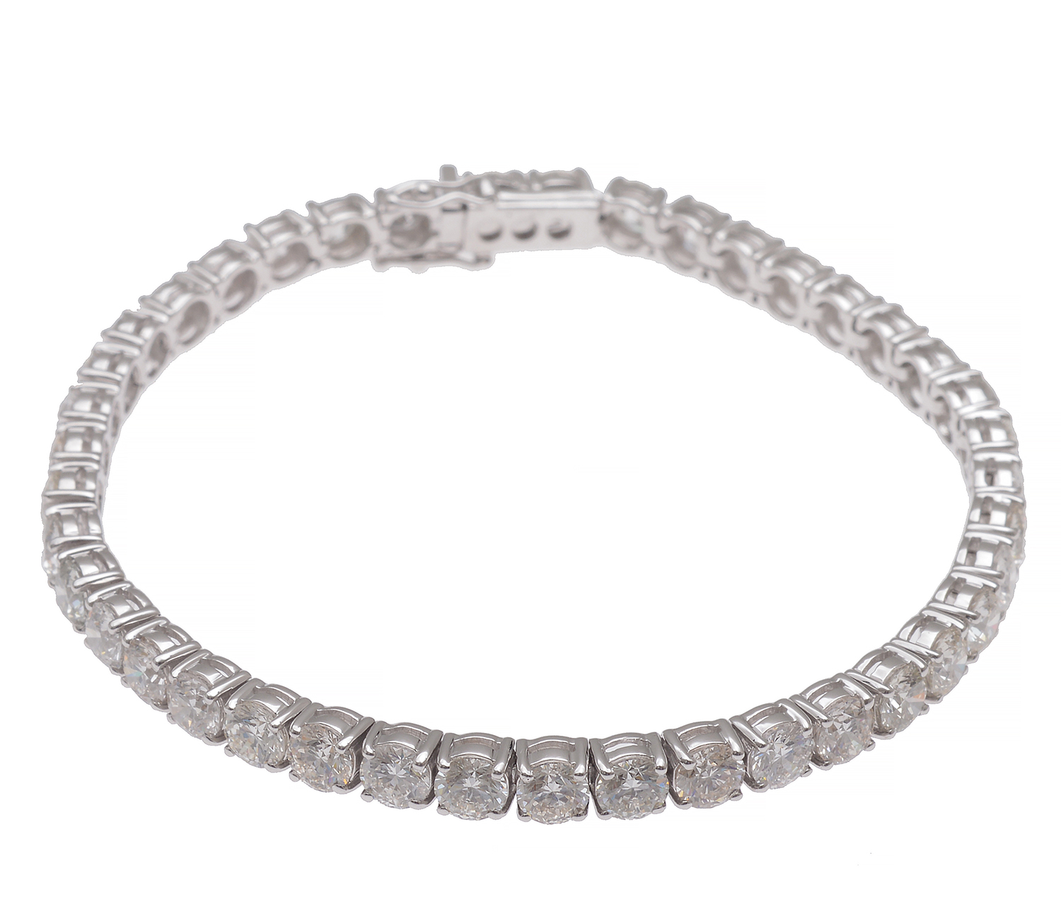 Comprising forty one round brilliant cut diamonds totalling 11.73cts, mounted in 18ct white gold, total length 180mm.
