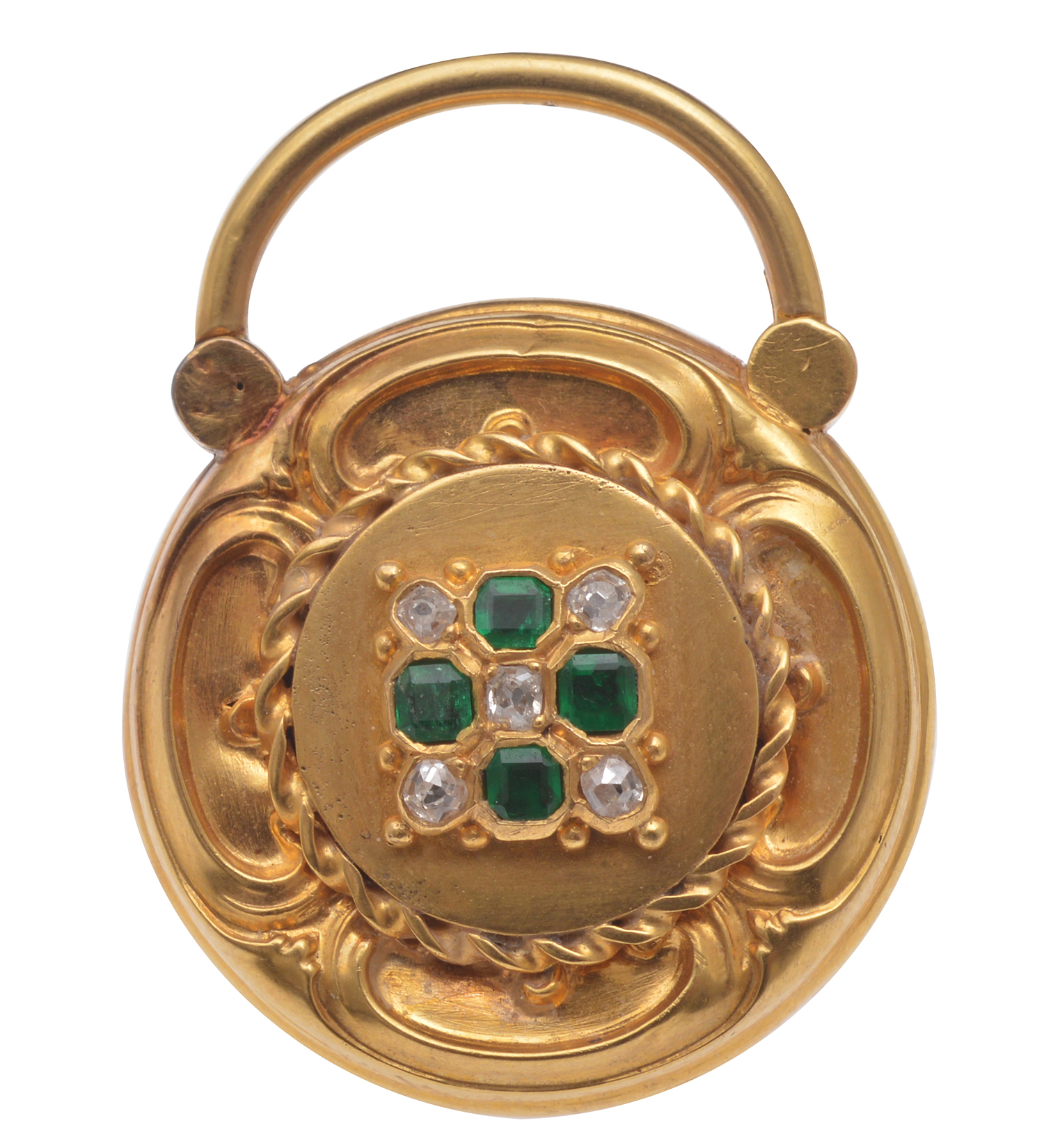 AN ANTIQUE EMERALD AND DIAMOND PADLOCK