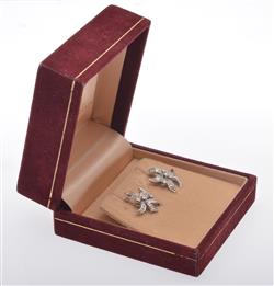 Earrings present in very good condition and stones appear to be secure in their settings. Diamonds are of good commercial quality. Having clip fittings.