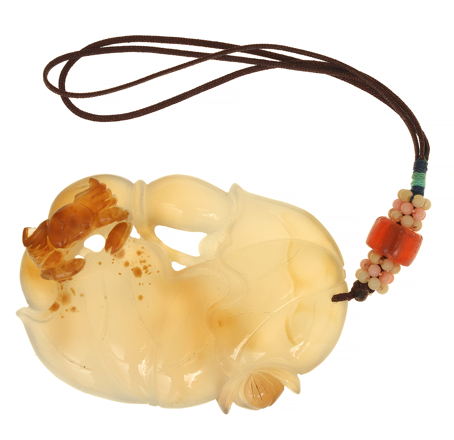 modelled as a lotus and crab, attached to toggle, 5.5 x 4cm