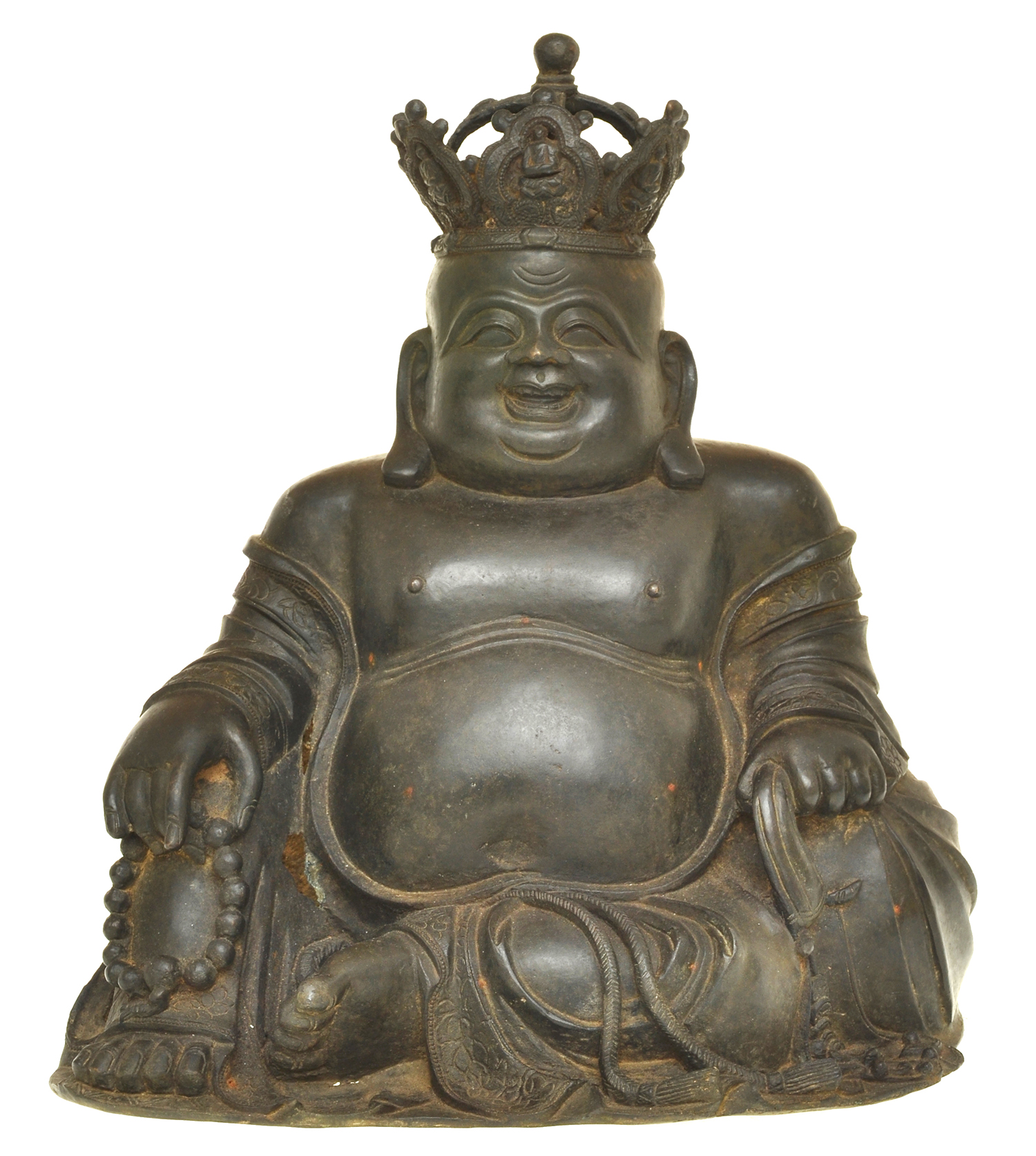 in the seated position, modelled with a content expression, elongated earlobes, wearing a crown, 34 cm high