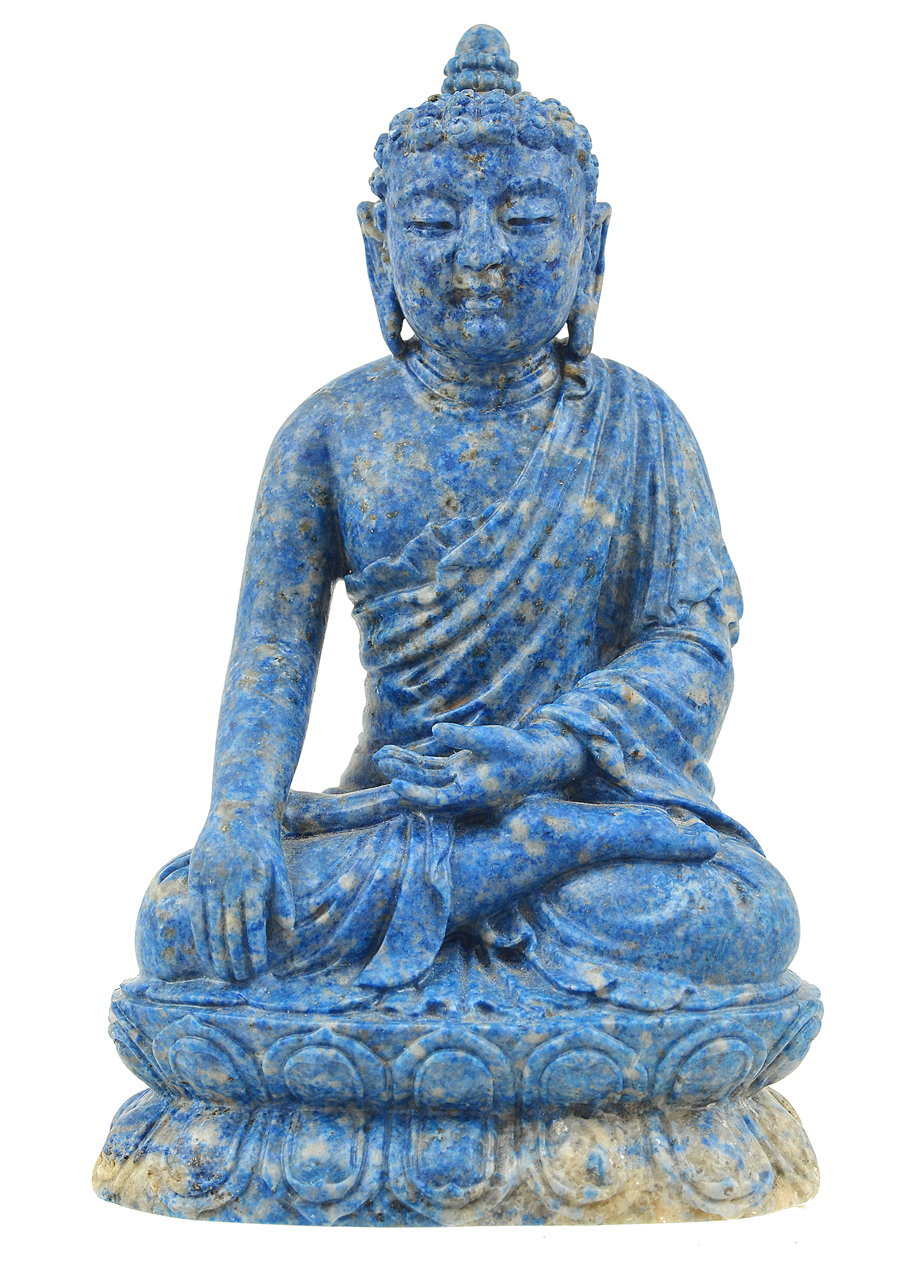 A CHINESE CARVED SODALITE FIGURE OF SHAKYAMUNI