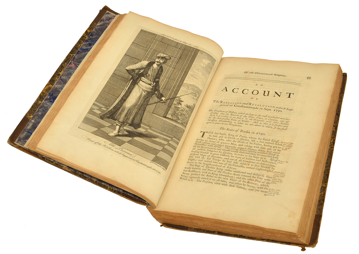 Particularly of Constantinople, Syria, Egypt, and Greece. In which their antiquities, government, politics, maxims, manners and customs ,(with many other circumstances and contingences) are attempted to be described and treated on. Perry, Charles, T.Woodward; London, 1743, first edition, half leather bound with marbled boards, restorations throughout