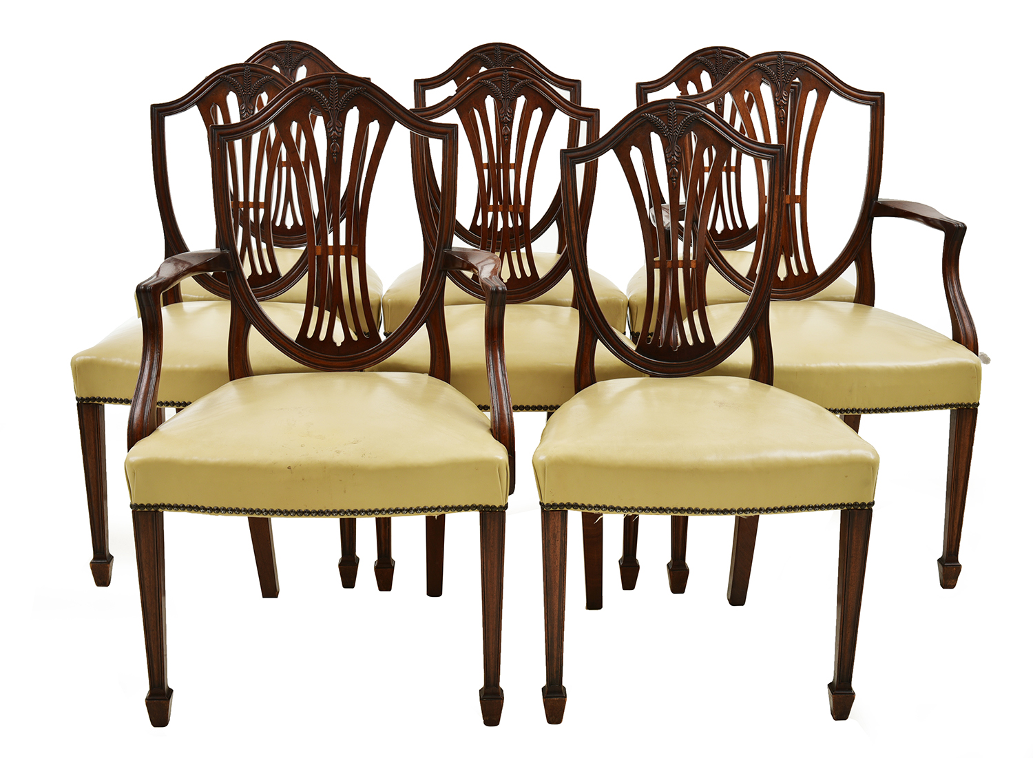 A HEPPLEWHITE STYLE MAHOGANY DINING SUITE