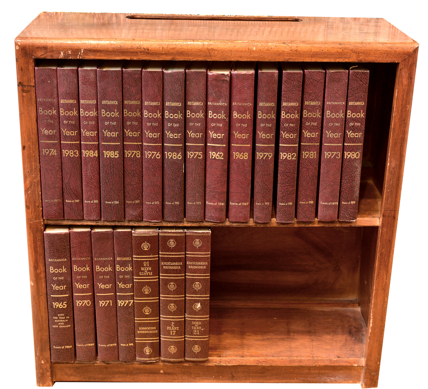 AN ENCYCLOPEDIA BRITTANICA SET, HOUSED IN A CUSTOM MADE BOOKCASE, 20TH CENTURY