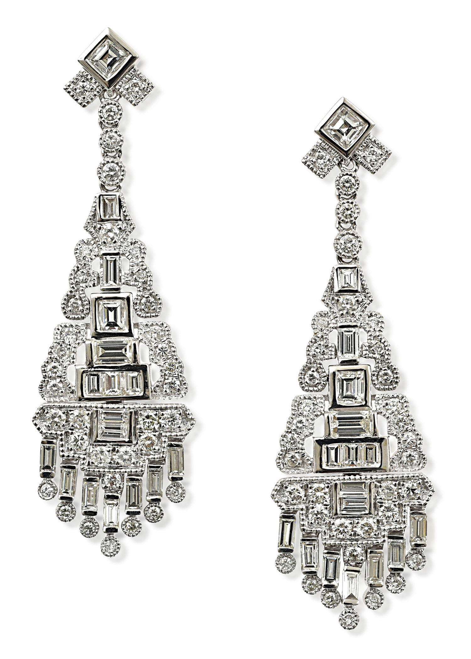 Each set with baguette cut and round brilliant cut diamonds totalling 1.99cts, mounted in 18ct white gold.
