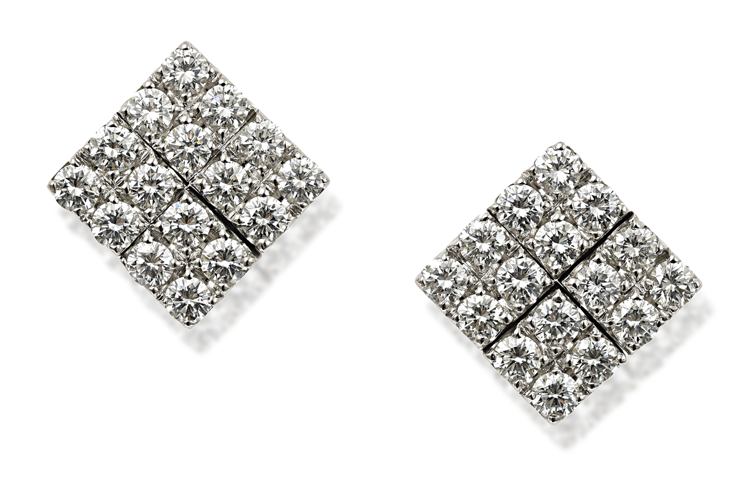 Each comprising sixteen round brilliant cut diamonds totalling 0.94cts, to a square setting, mounted in 18ct gold.