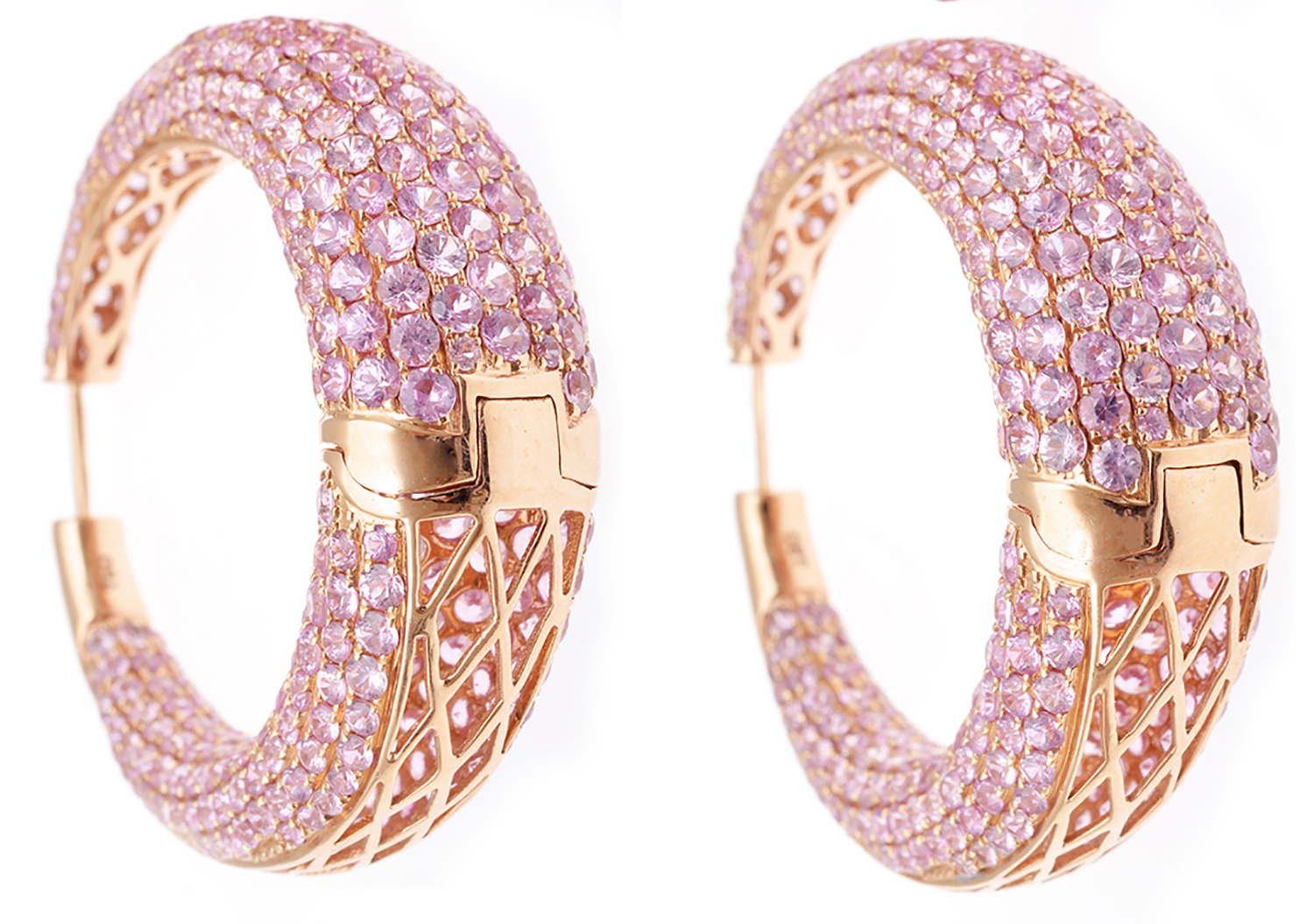 Each set throughout with round pink sapphires totalling 12.50cts, all mounted in 18ct gold.