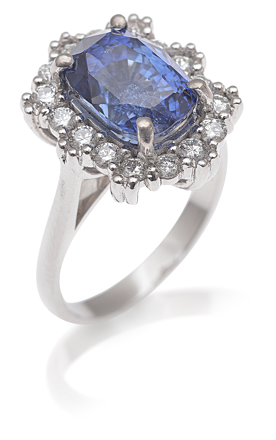 Presents in as new condition with all gems secure in their settings. Diamonds totalling approximately 0.74cts. Sapphire has indications of heat treatment. setting is hand crafted in platinum.