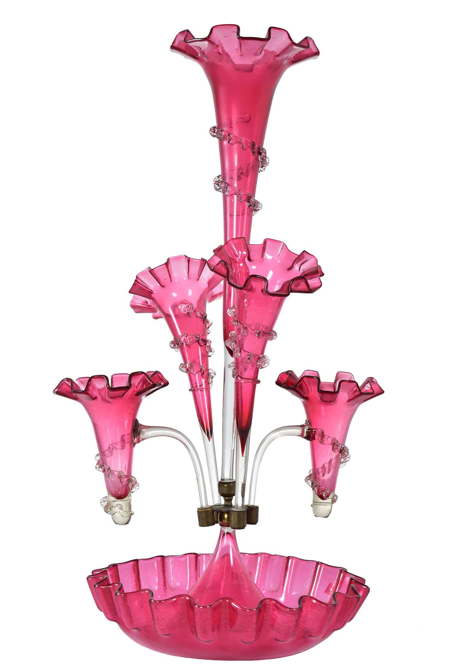 with four trumpets to the perimeter and a further central trumpet, 58cm high