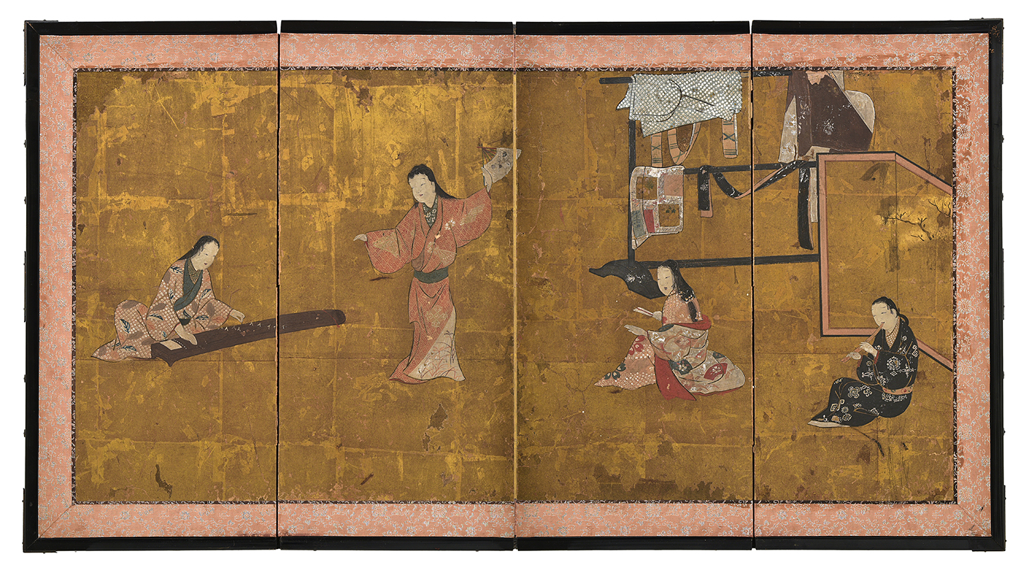 UKIYO-E SCHOOL, A JAPANESE FOUR PANEL TABLE SCENE