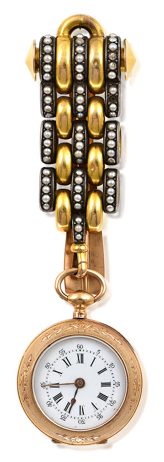 No key for pocket watch so currently not ticking and not recently serviced or timed. Monogram to exterior of the case. Pocketwatch and albertina are married. Albertina partly gold cased. Boxed. Part of the back pin section has been cut down.