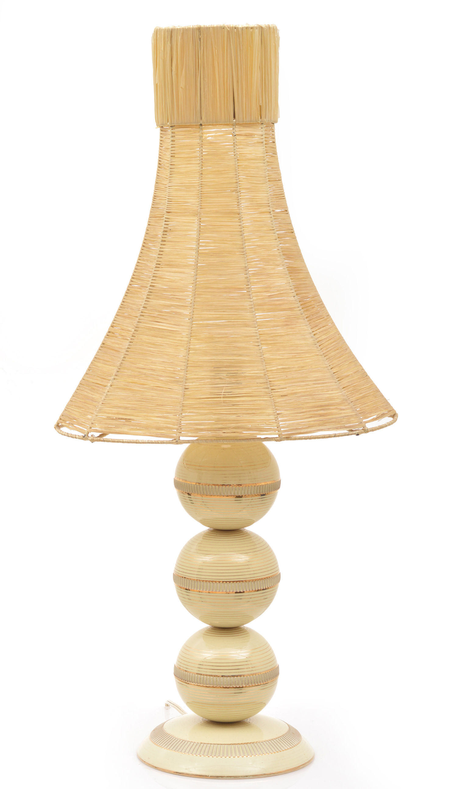 Three ceramic spheres base with a raffia shade (stamped made in Florence)