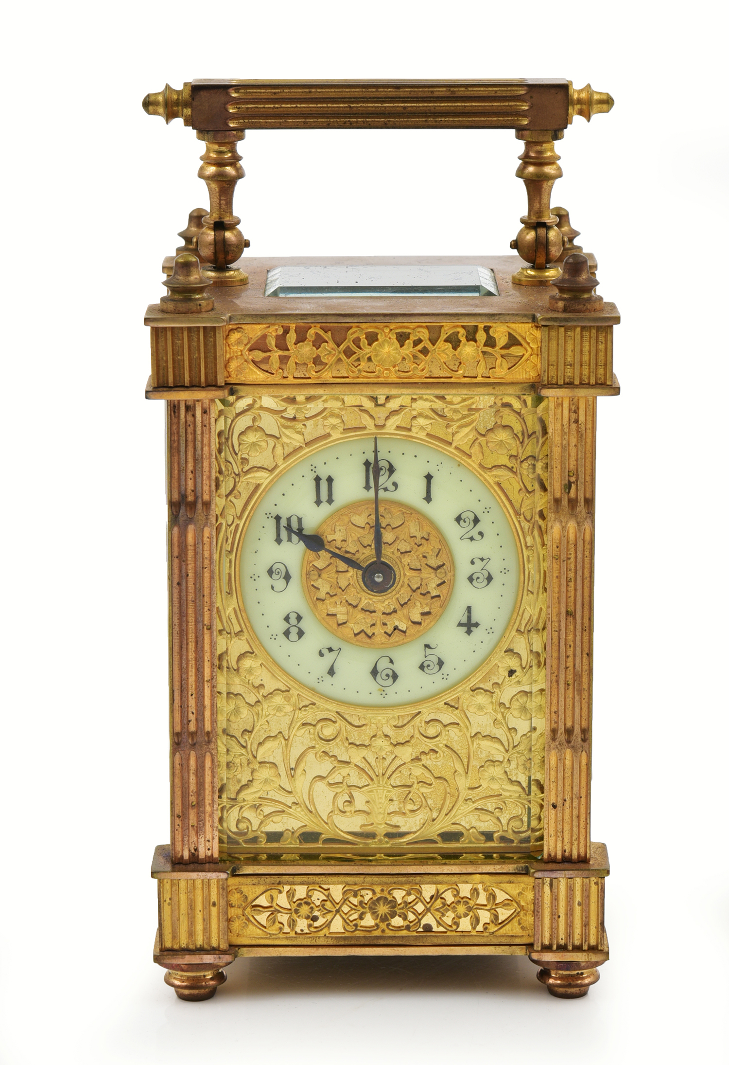 A 19TH CENTURY BRASS CASED CARRIAGE CLOCK